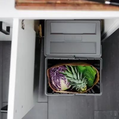 Se vårt utvalg av løsninger til avfallsortering. De passer til både skap og skuffer i ulike størrelser.